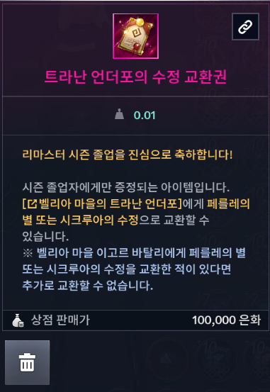 보유하고 계신 시크루아의 정수는 시즌 종료 후 업데이트 점검 시 삭제됩니다.