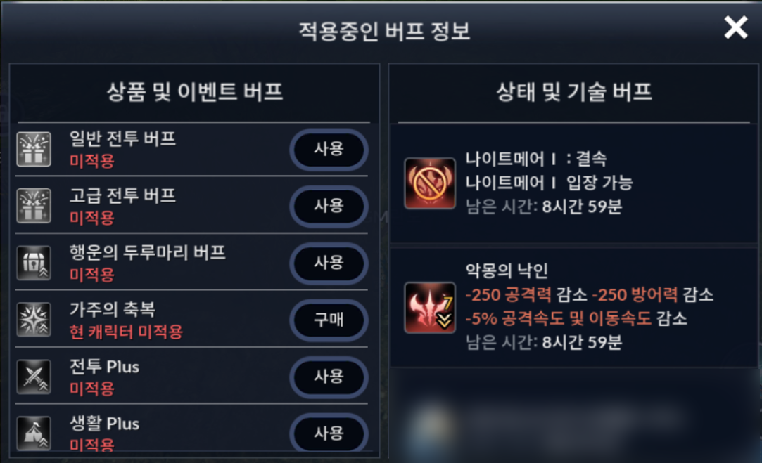ㆍ 미접속 상태에서도 남은 시간이 감소하며, 기원의 샘물을 사용하여 악몽의 낙인이 완전히 제거되면 사라집니다.