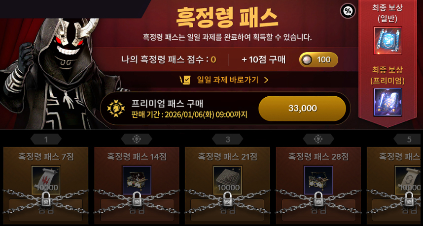 - 보상을 획득해도 '흑정령 패스' 아이템은 소모되지 않습니다.