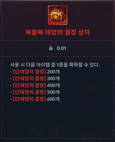 | 행운의 결정 1개 | 혼돈의 결정 600개 | 복불복 태양의 결정 상자 |