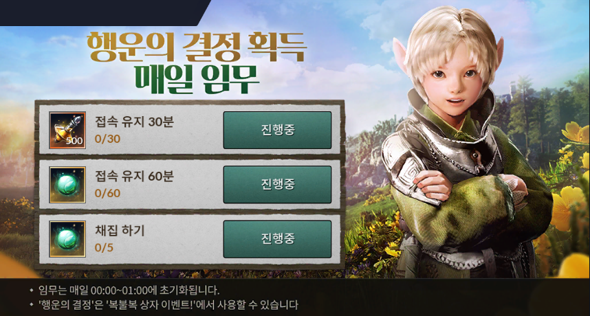 | 접속 유지 60분 | 행운의 결정 1개 |