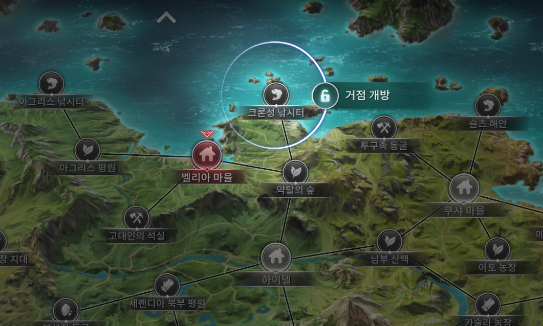 2. 낚시 파견을 보낼 수 있는 거점을 확인하고 거점을 연결하여 개방합니다.