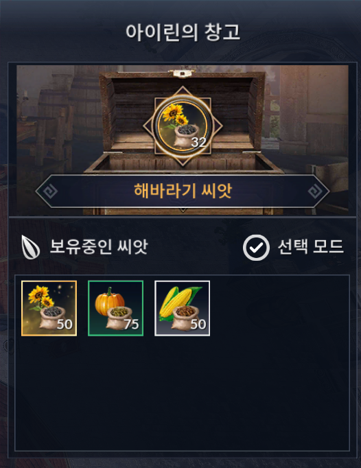 영지 관리인에게 씨앗을 맡기면 영지 관리인이 텃밭에 씨앗을 심고, 성장이 완료된 작물을 수확합니다.