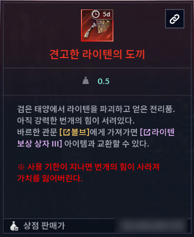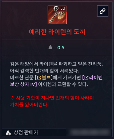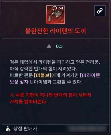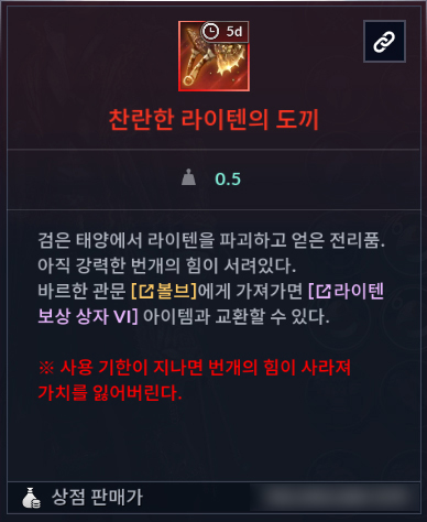 ㆍ라이텐 보상 상자는 5일의 유효 기간을 가지고 있으며, 기간 만료 후 상점에 판매할 수 있습니다