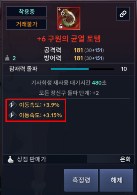 '장신구 돌파 단계 증가 옵션'은 결합된 토템 중 가장 높은 수치만 적용됩니다.