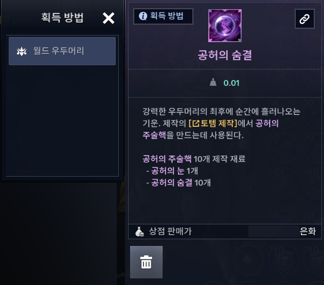 - 공허의 주술핵 제작에 사용되는 ‘공허의 숨결’ 아이템은