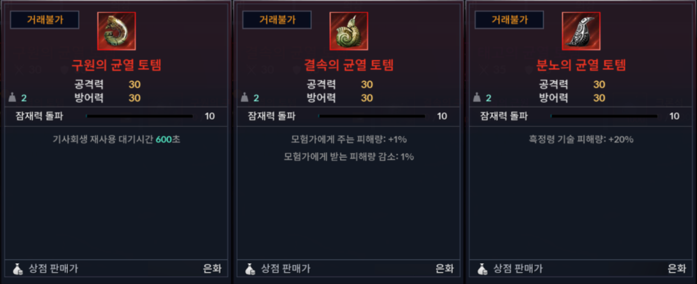 균열의 토템은 공격력, 방어력 뿐만 아니라